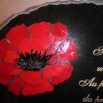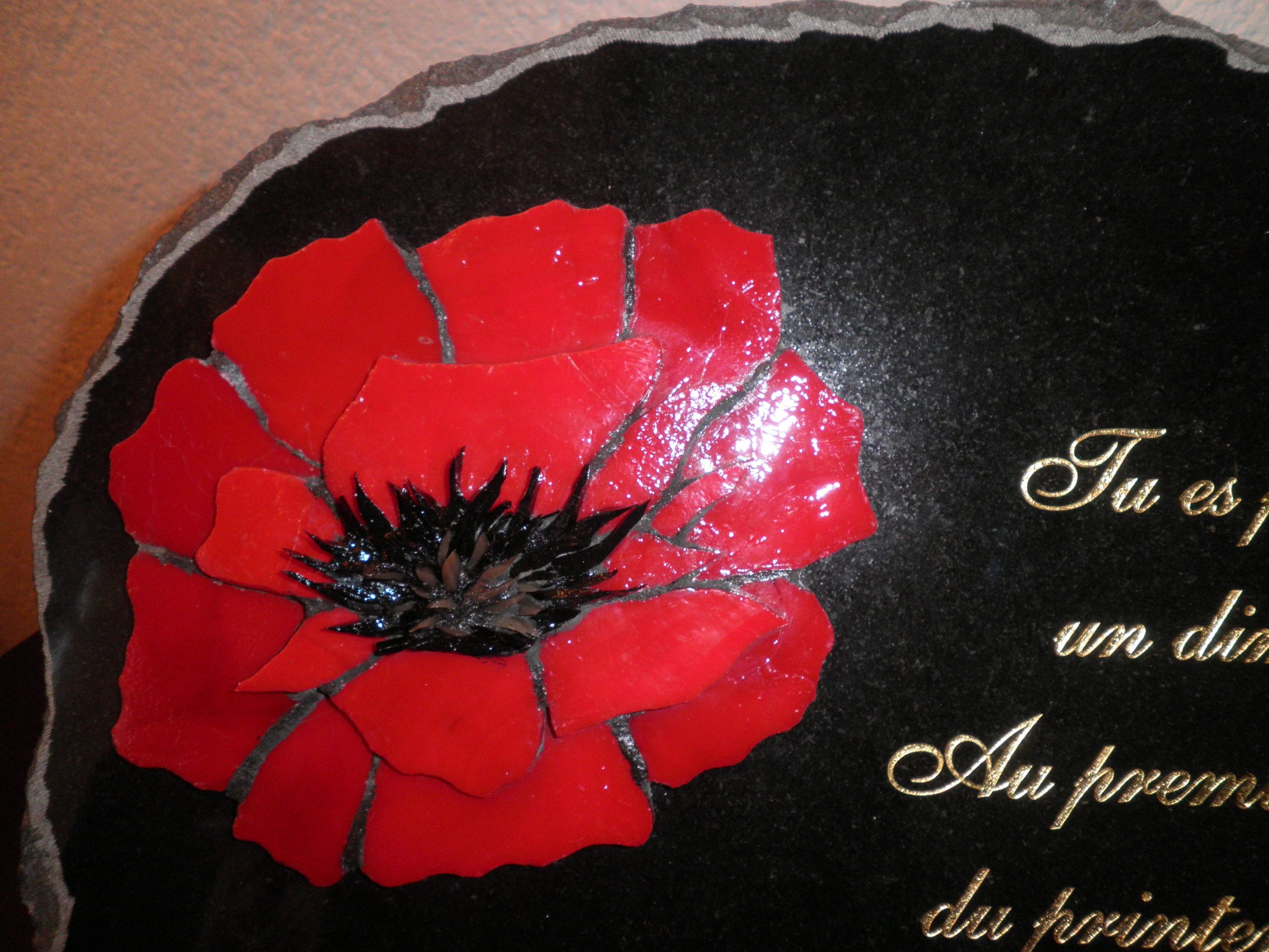 coquelicot en relief, en verre artisanal sur plaque funéraire